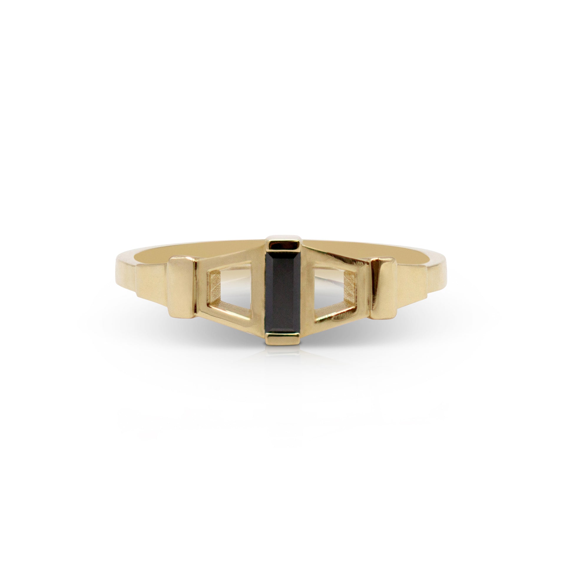 ✤Gold ring set with a baguette cut black diamond 0.13ct