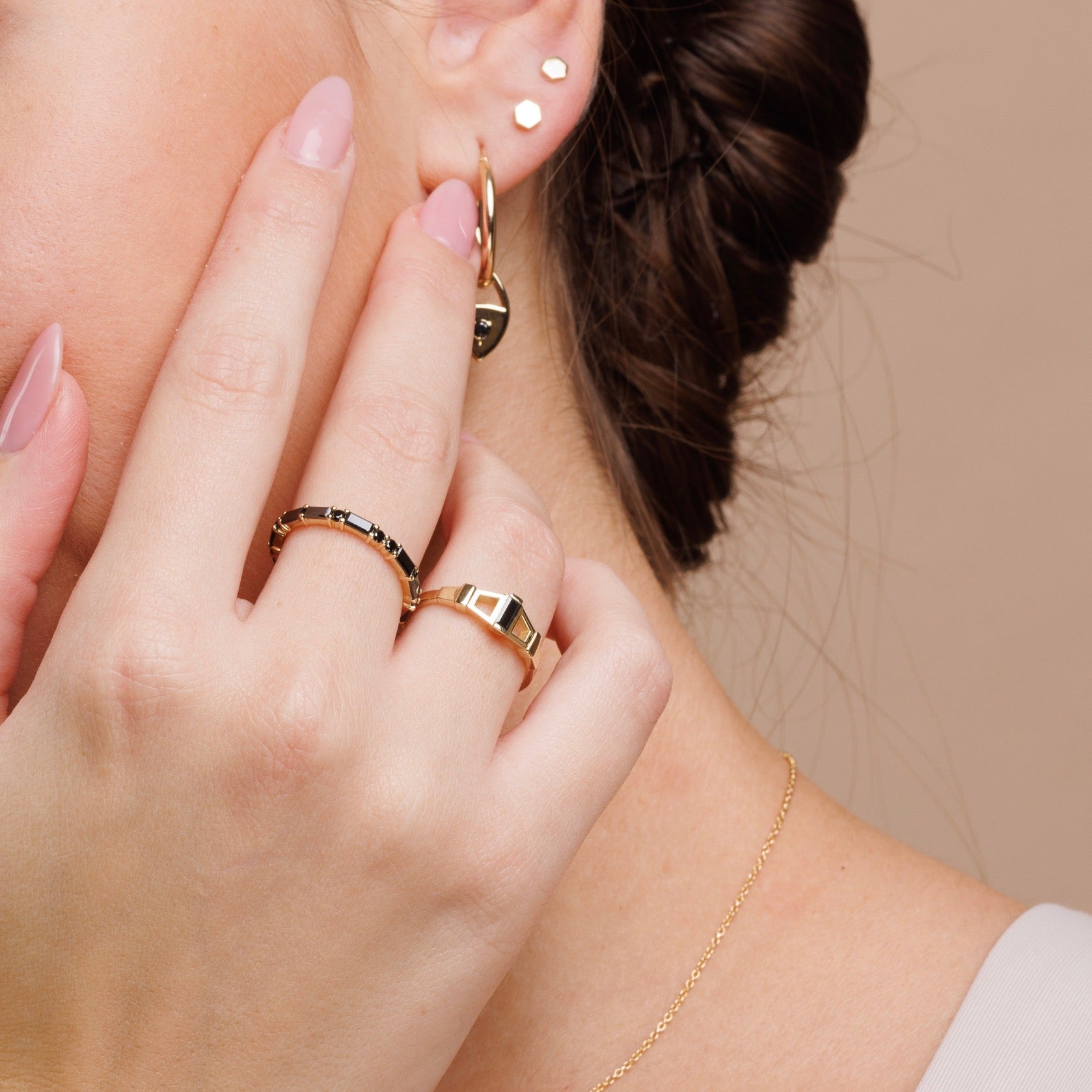 The contrast between the black color and the gold color gives the designs a certain refined dominance and edge to complement everyday wear.