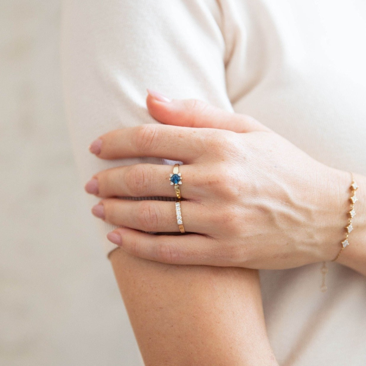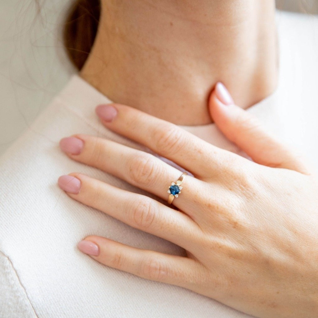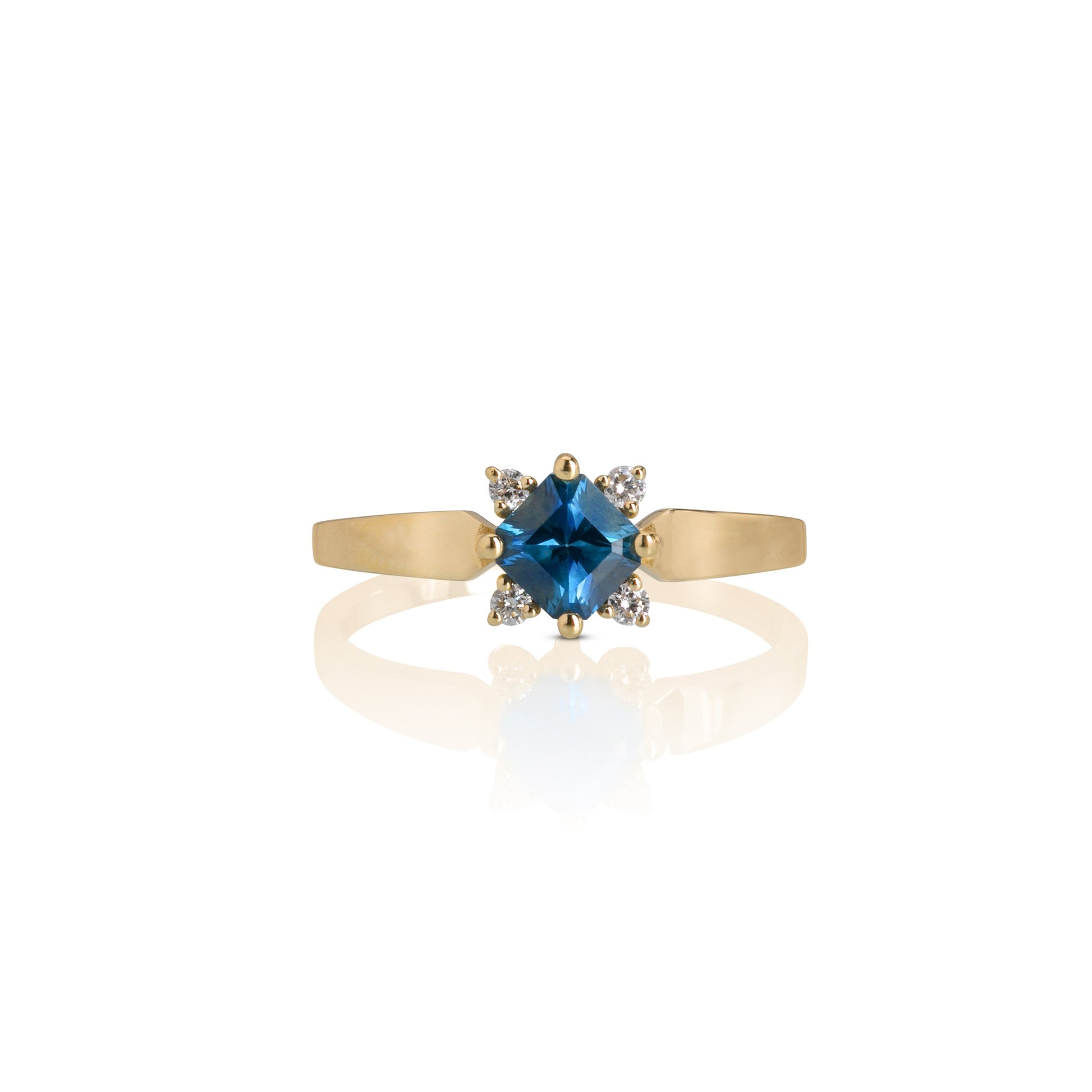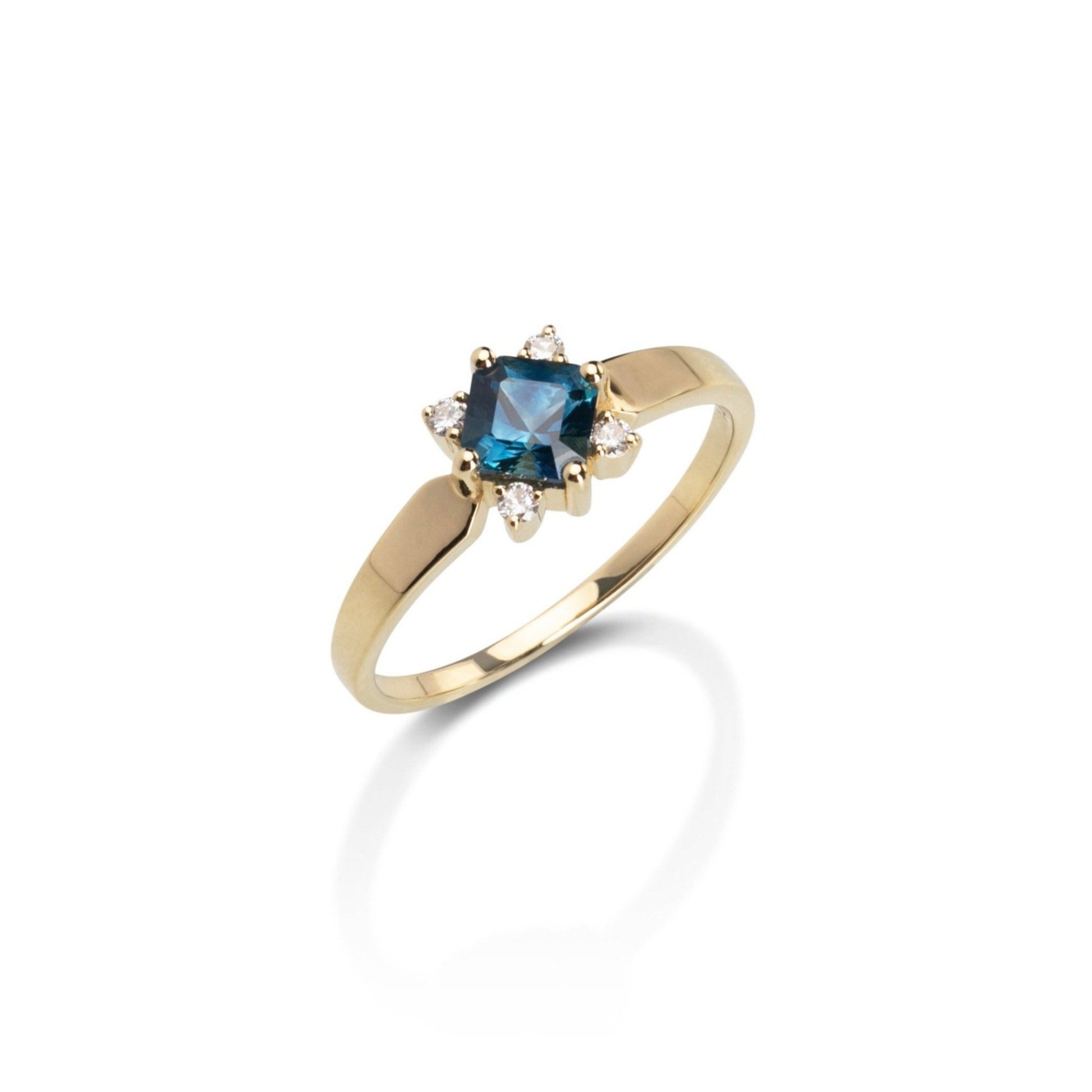 ✤Gold ring set with a blue sapphire 0.74ct and 4 diamonds- total of 0.06ct