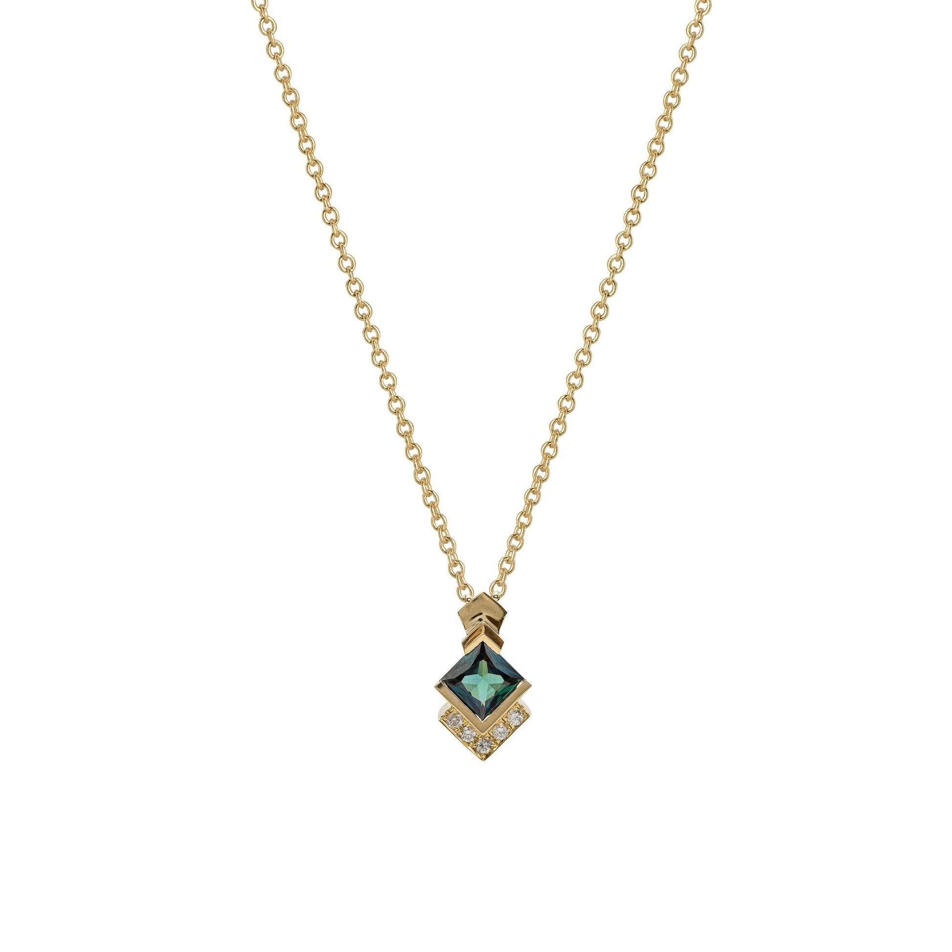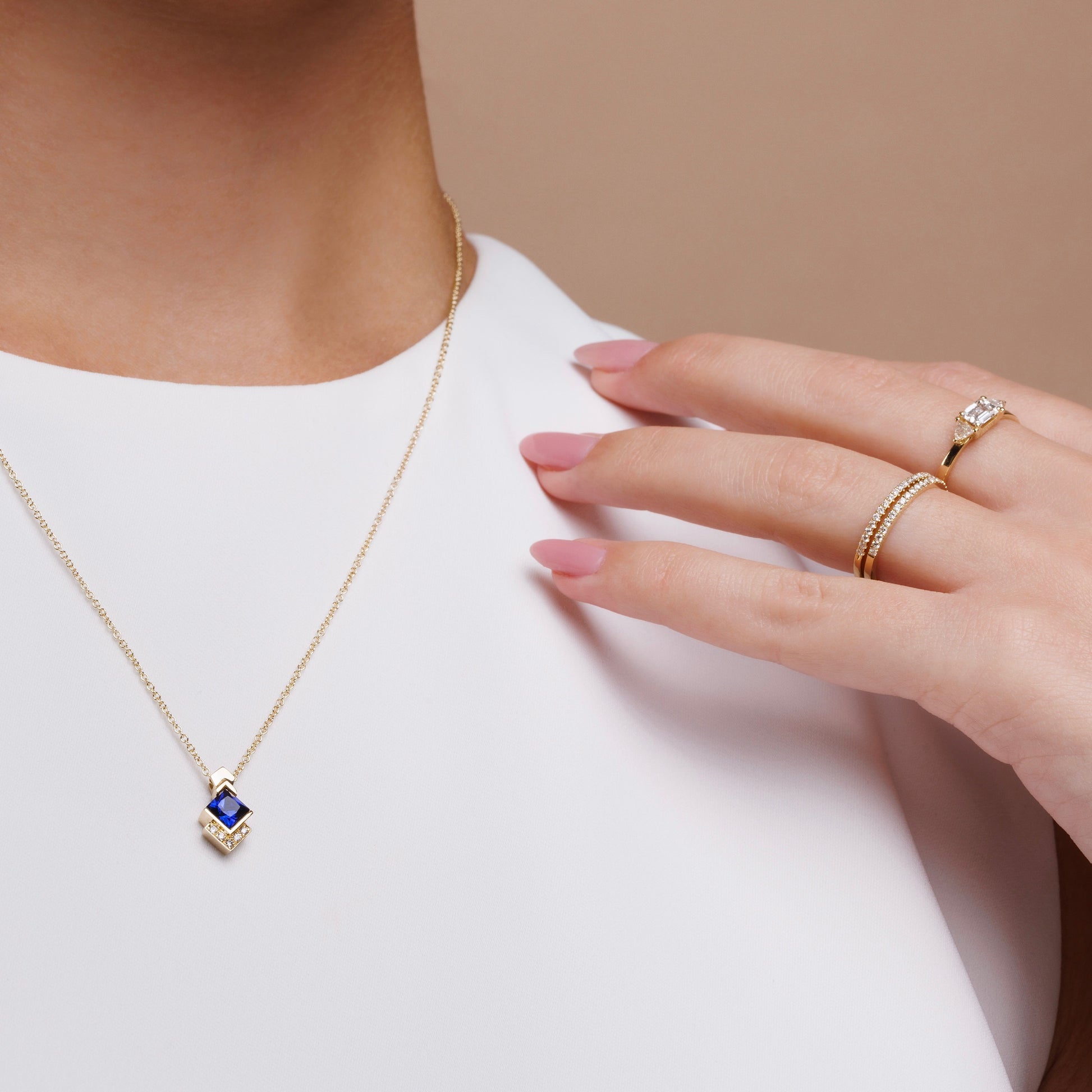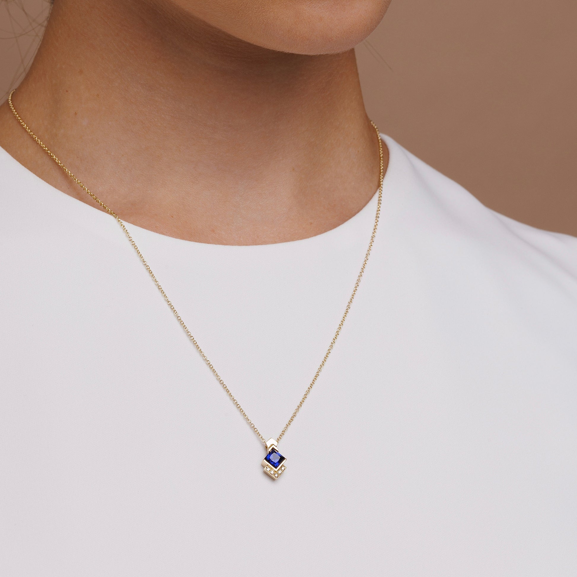 ✤Gold necklace set with an princess cut sapphire 0.67ct, 5 white diamonds - total of 0.05ct