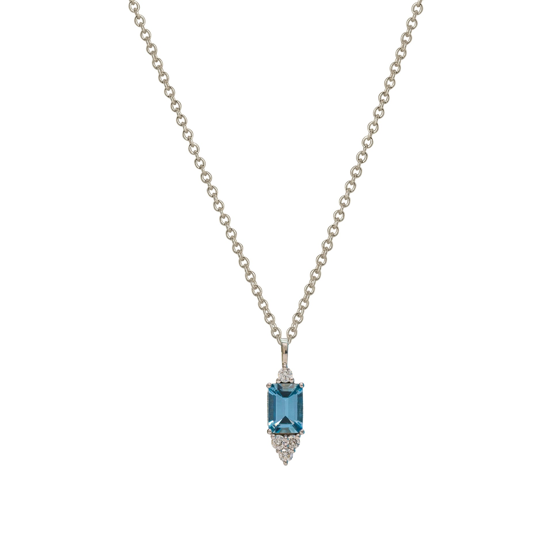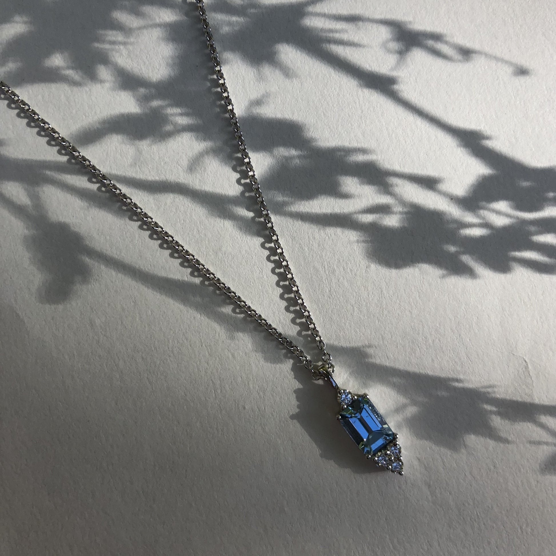 ✤Gold necklace set with an emerald cut aquamarine 0.58ct, 4 white diamonds - total 0.12ct