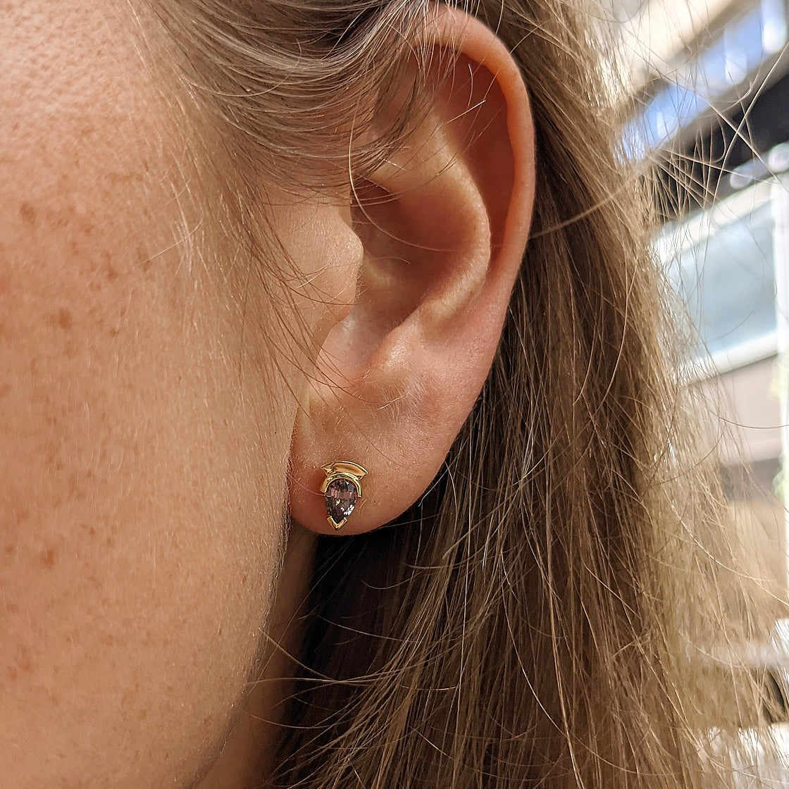 ✤Gold earrings set with 2 pear cut spinel- total of 0.73ct