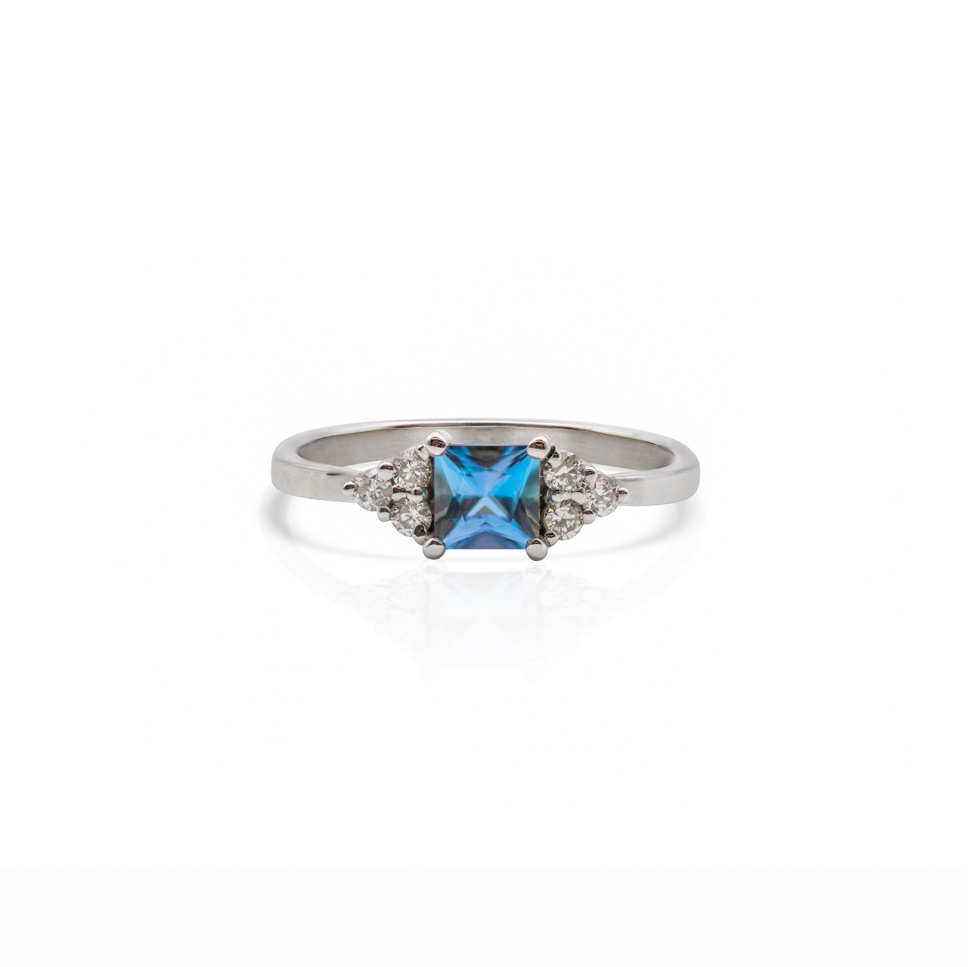 ✤Gold ring set with an princess cut aquamarine 0.26ct, 6 white diamonds - total 0.10ct