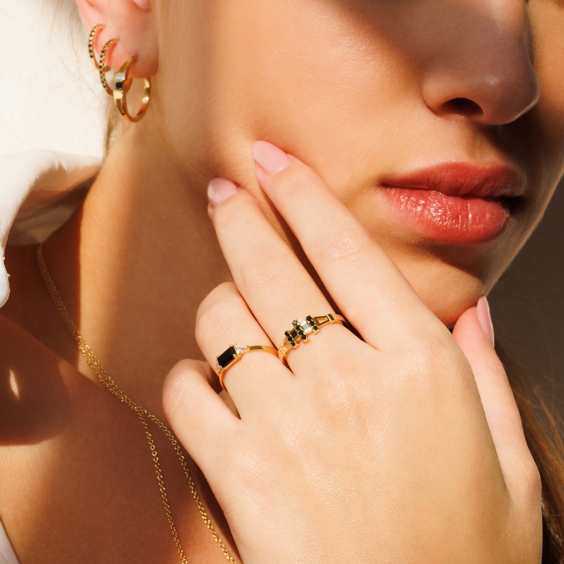 The contrast between the black color and the gold color gives the designs a certain refined dominance and edge to complement everyday wear.