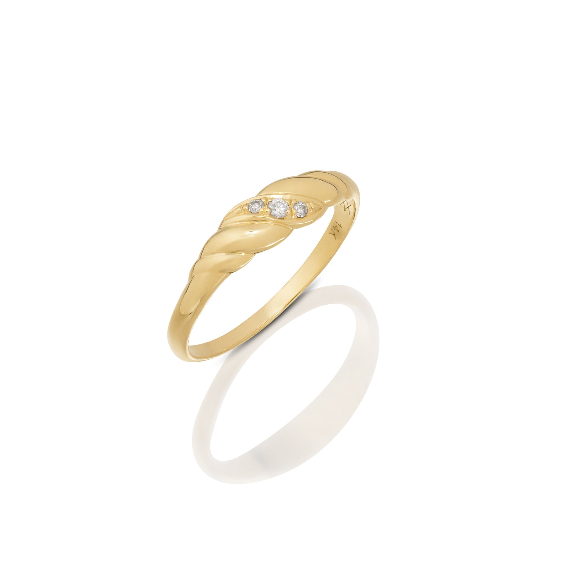 ✤Gold ring set with 3 diamonds - total of 0.035ct