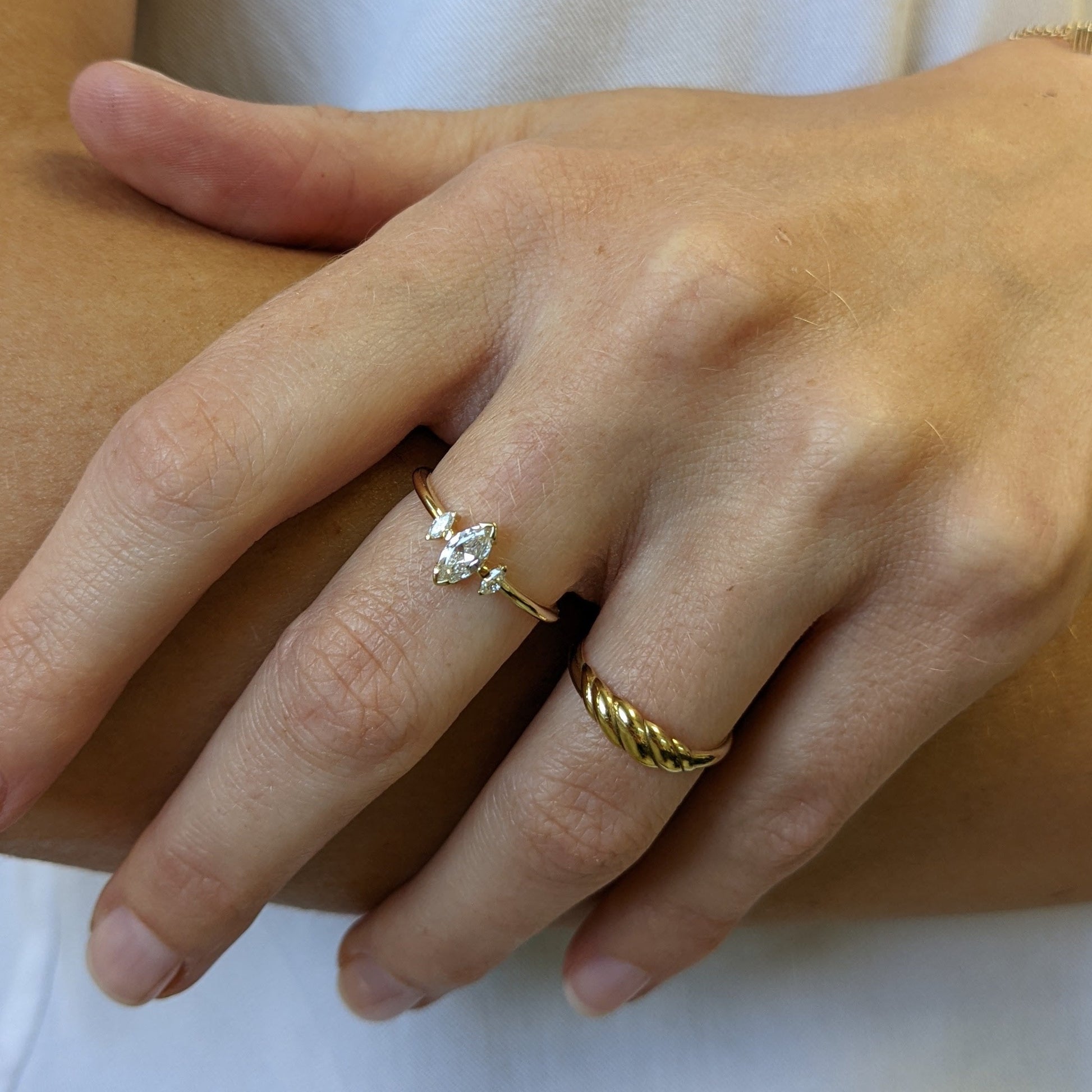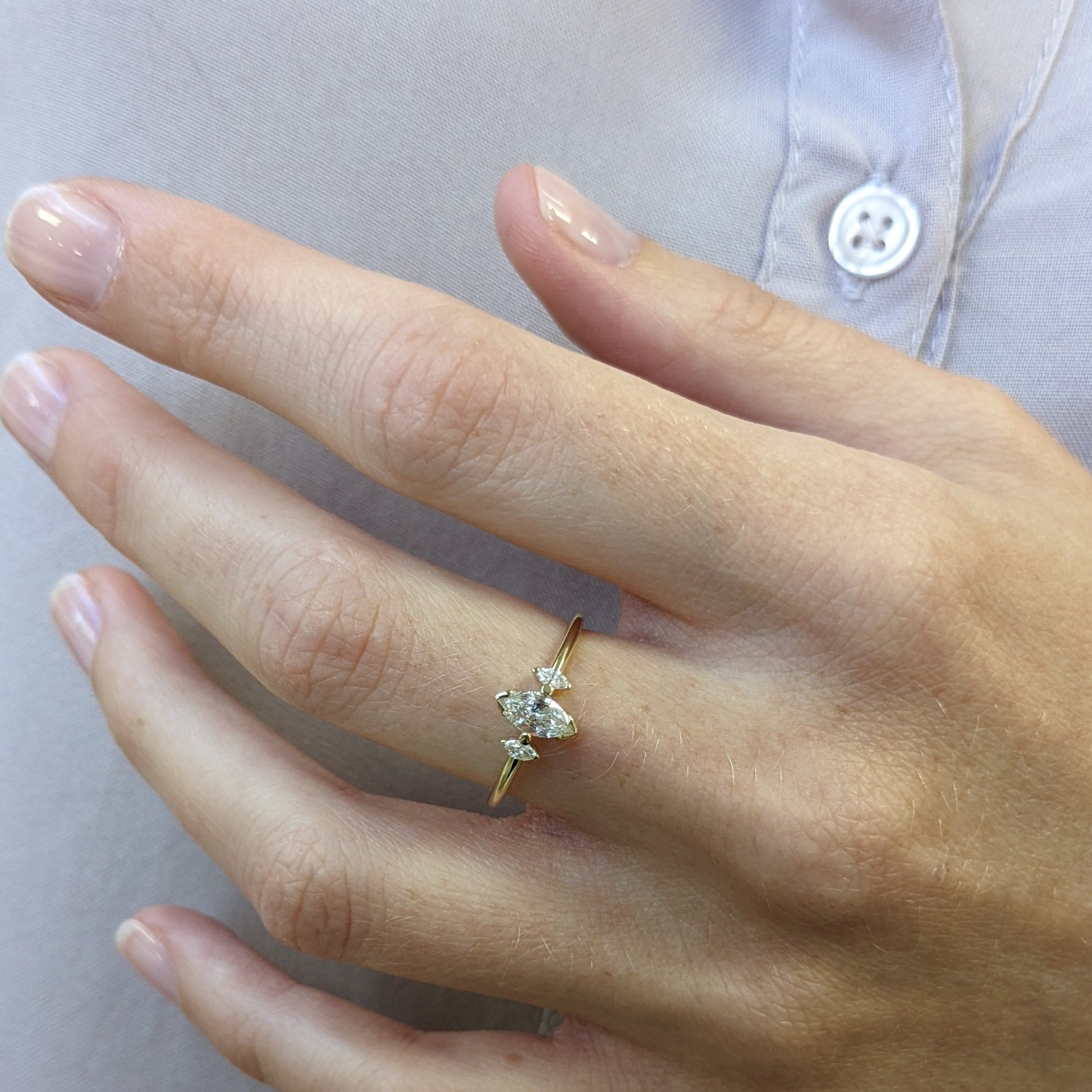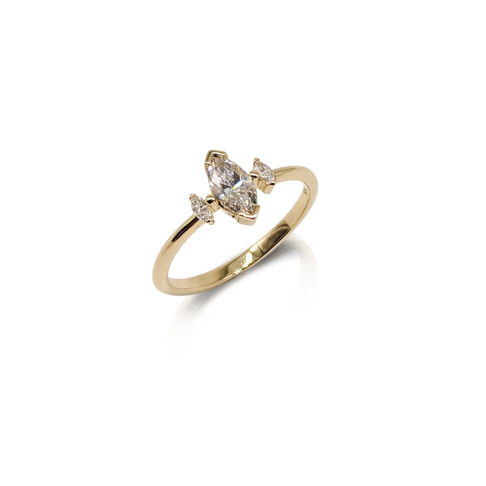 ✤Gold ring set with a Center marquise diamond 0.30ct, 2 small marquise diamonds 0.03 each - total of 0.46ct