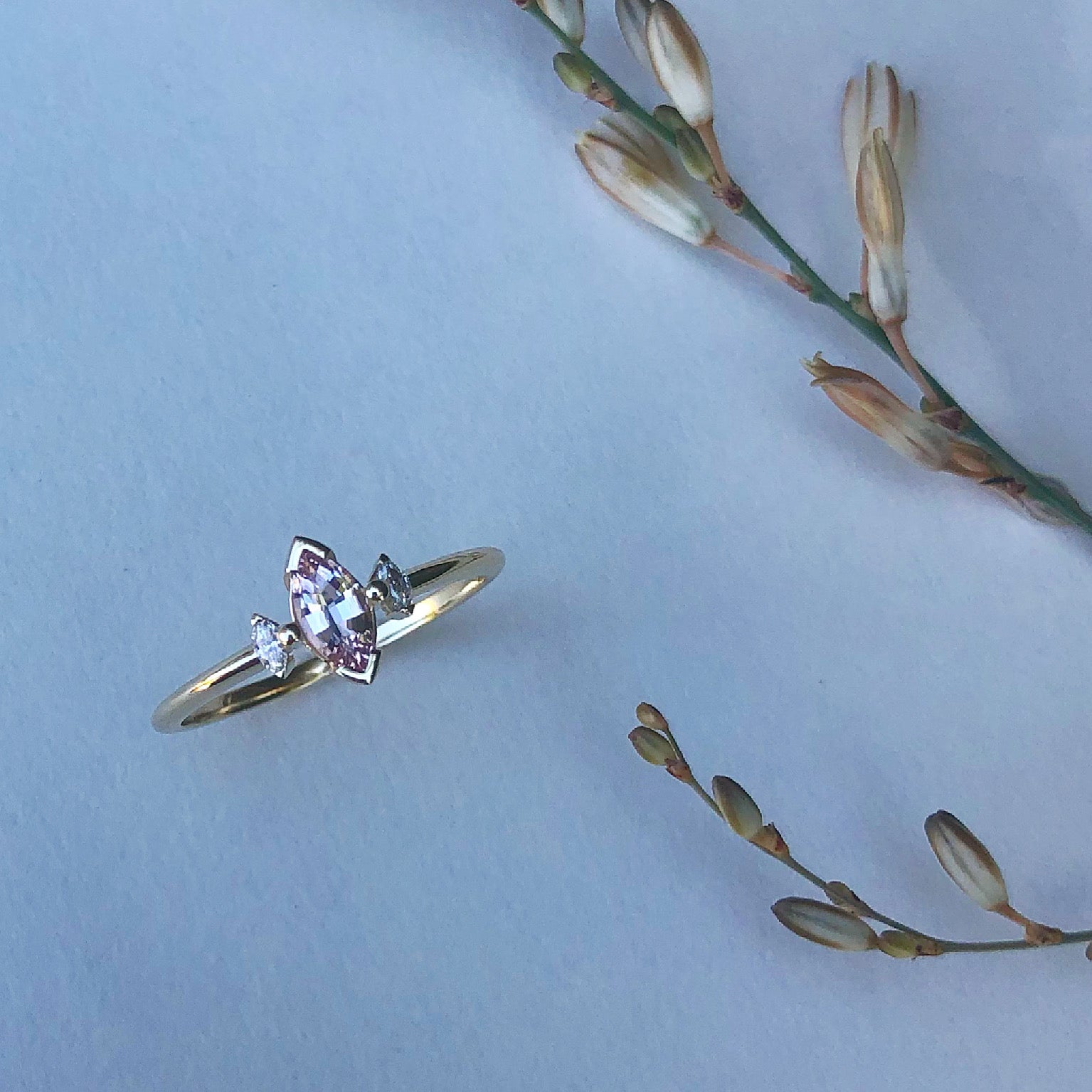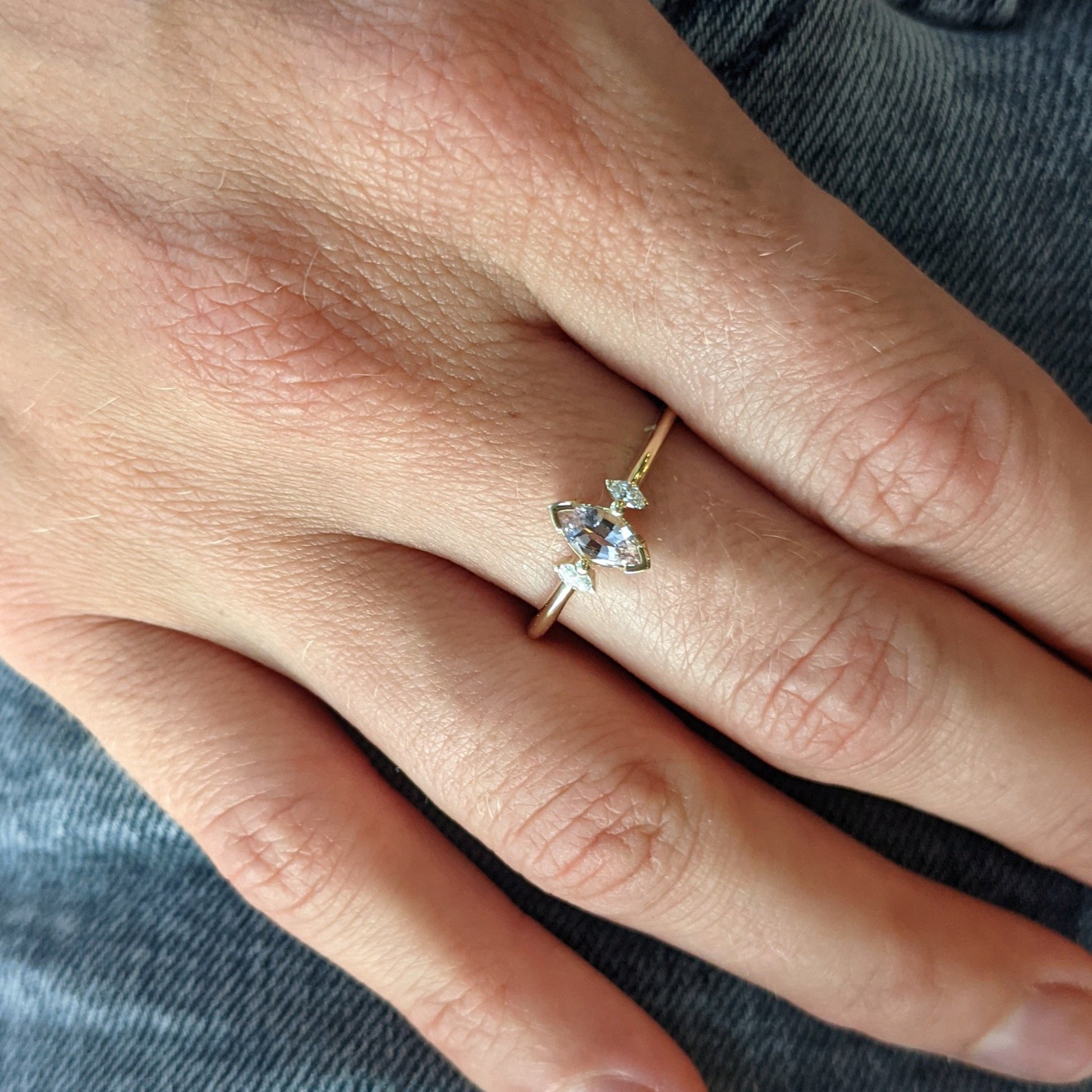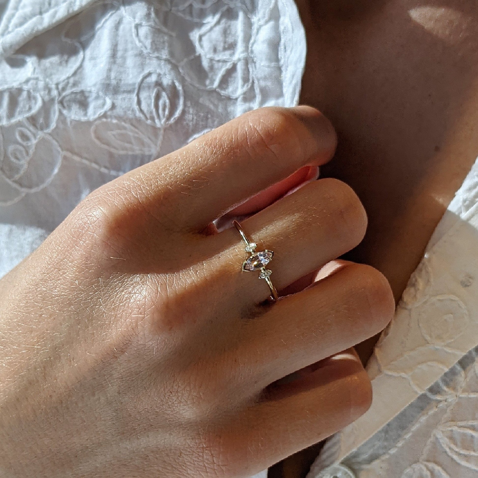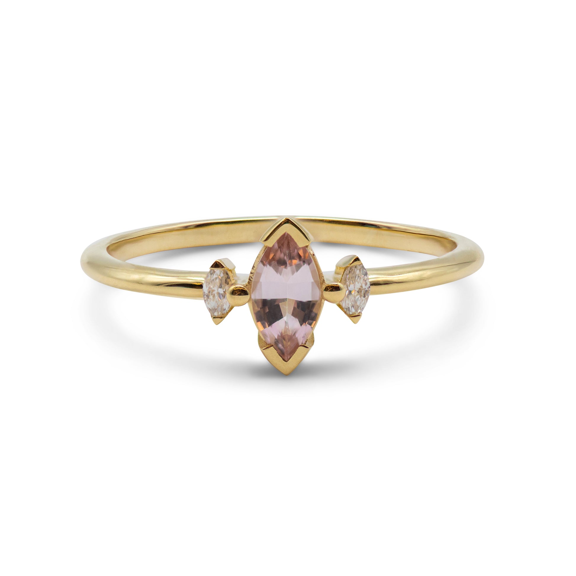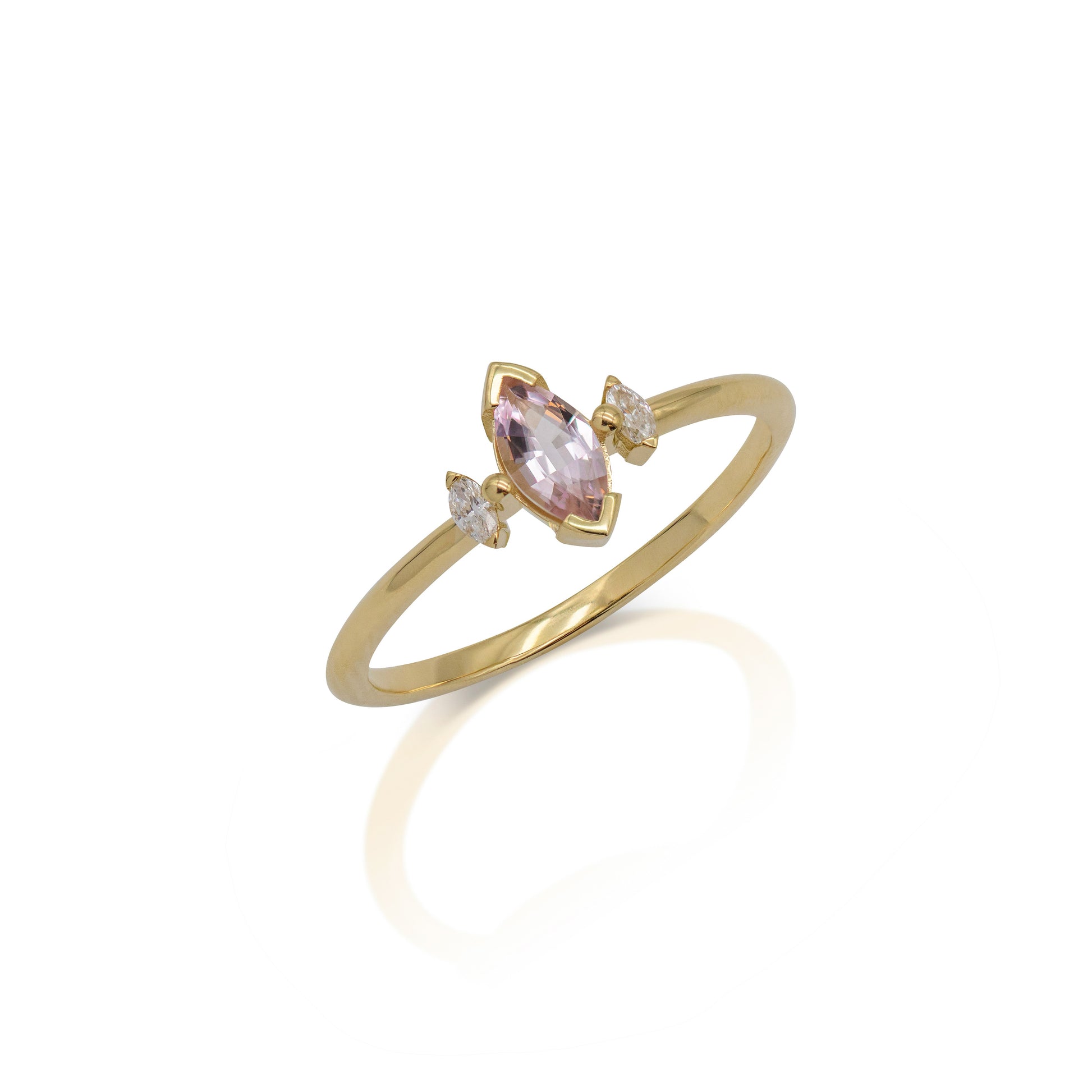 ✤Gold ring set with a Center marquise morganite 0.25ct, 2 small marquise diamonds 0.03 each - total 0.06ct